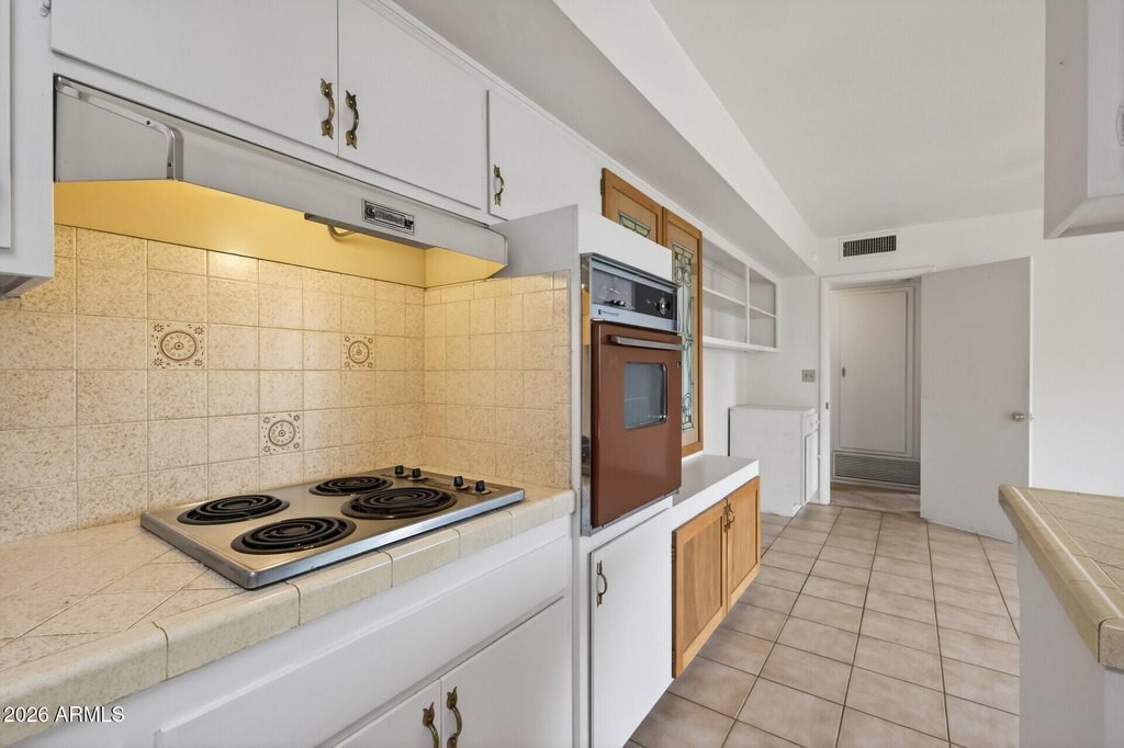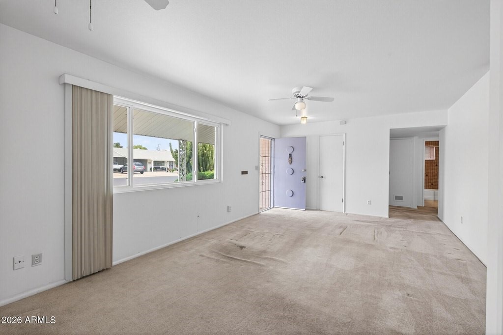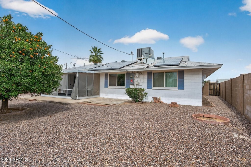 Come see this North/South facing Vintage Sun City Home. Built in 1961. It is SWEET!! Needs a little TLC, some fresh paint and flooring, new screens in the back covered patio and Viola...you will have an Adorable Abode! Great floor plan, Includes Living room/Dining room combo. Kitchen with authentic Sun City tile, and counter seating for two. Family room off the kitchen feels like an open floor plan! 2 Bedrooms, 2 Baths. Block walls surround the low maintenance back yard. Providing you with privacy. Also included is your own delicious orange tree! 1 car garage. Laundry room off the screened patio. Come see this Adorable home and move to Sun City! The Original Fun City!!